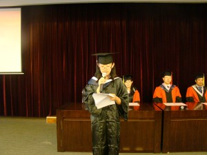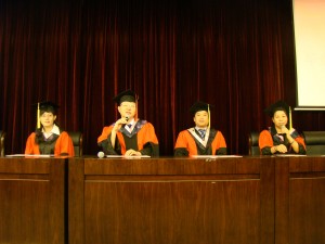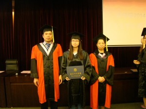 最后,刘爱龙、齐兴利、程乃胜、谢冬慧等四位教授为毕业生们授予学位。同学们排队依次从导师的手中接过学士学位证,再由另一导师将学位帽上的流苏从右拨到左,和导师们握手,并合影留念。师生们依依不舍地合影留念,互道珍重,为2014届毕业生踏上新的航程而祝福。