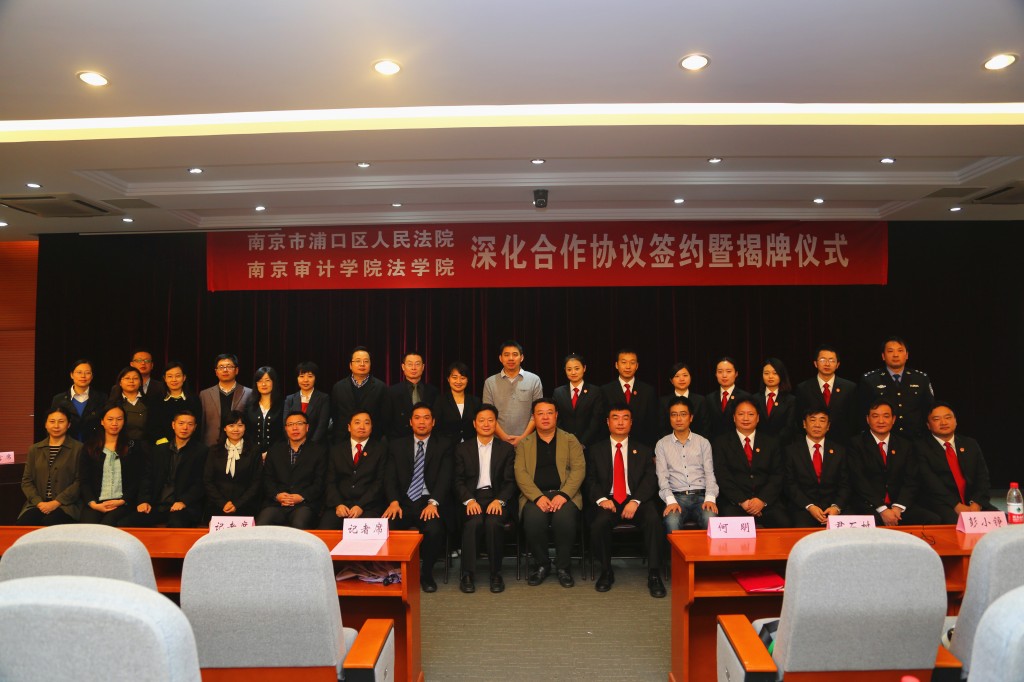 金秋硕果飘香,细雨濛濛醉人,在南京审计学院美丽的润泽湖畔,“润法同行”南京市浦口区人民法院与我校色情卡通 全面深化合作签约暨揭牌仪式,于11月1日上午在我校教学法庭隆重举行。校党委副书记、副校长张建红、南京市中级人民法院副院长冯驰、浦口区人民法院院长陈高峰、教务委员会副主任孙国锋等有关部门负责人以及色情卡通 师生共140余人参加仪式。自2012年合作共建南京首家高校法庭以来,立足于“一个基地,三大平台”(司法调研基地,教学法庭、法学实践教学及审判实务研究中心、案例研究中心)的建设基础上,双方再次决定全面深化合作共建,实现法学教育和法律实践的无缝对接。