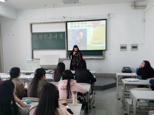 李秀华首先向同学们抛出引导性问题:提到“家暴”你能想到什么?根据同学们的回答她阐述了对家庭暴力这一概念应进行多角度理解。她还与同学们进行了互动,让大家自由联想,说出看法,现场气氛活跃。在一番交流后,李秀华让同学们认识到,家庭暴力不光光是家庭成员间的殴打等暴力行为那么简单,它还包括诸如“冷暴力”等多种形式,结果造成的不光有人身伤害,还包括精神损伤,有的甚至会威胁到家庭成员的生命安全。