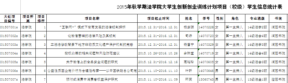 关于公布2015年秋大学生创新创业训练计划项目评审结果公示(含校级、院级)