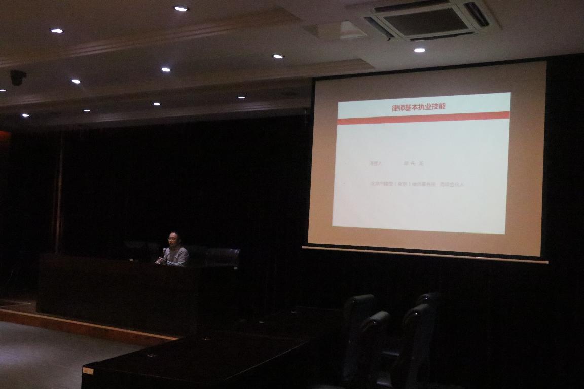 首先,胡律师从其从事律师职业23年的经验出发,为大家讲述了从接待当事人、接下案件,到准备文书和相关材料以及庭审应对等实务操作中每一个环节所需要注意的问题,并列举了两个具体案例和同学们深入探讨有关律师代理技巧。而后,胡律师以自身经历出发,畅谈了对当今律师业及其他法律职业与相关行业从业状况的感受和看法,并鼓励同学们眼光放远,不过分执着于某一个行业领域的选择,而是在不断提升自身学历与水平的基础上再进行选择。