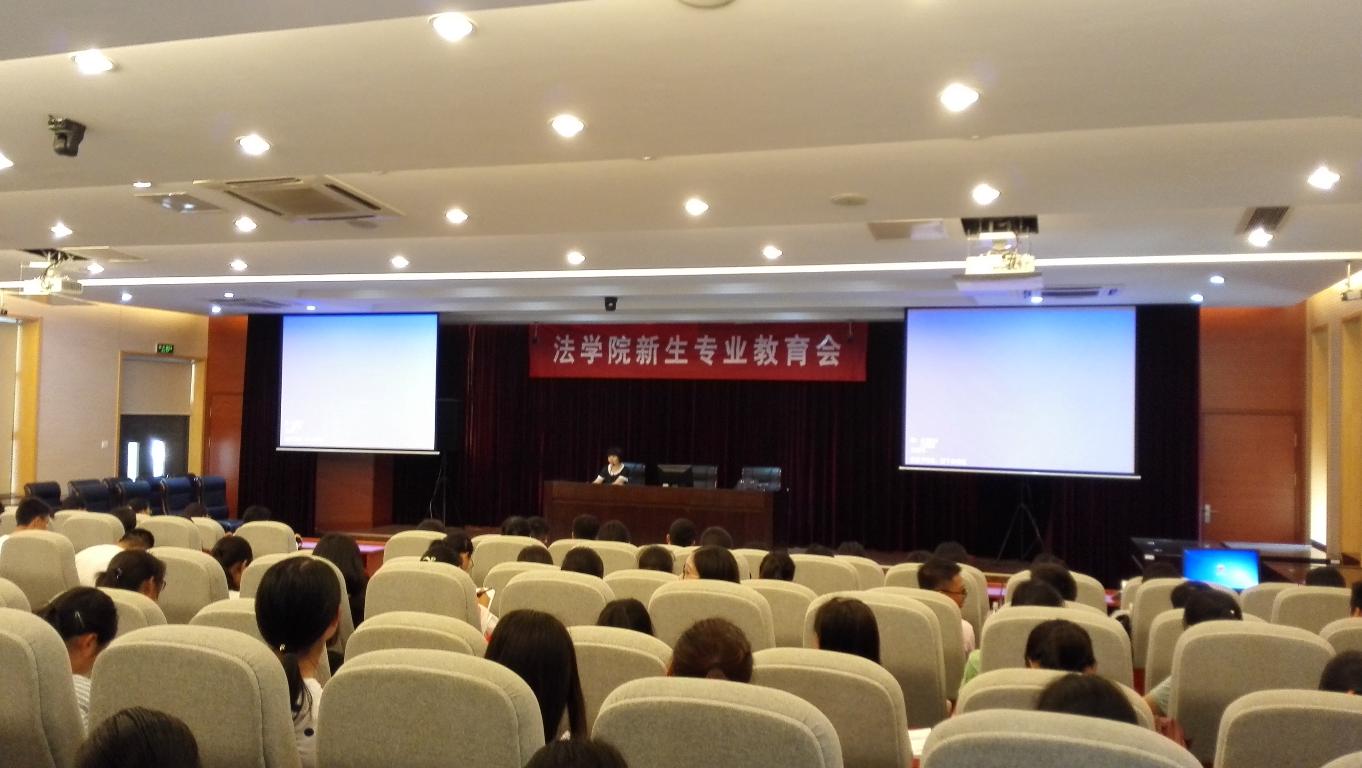 9月18日,色情卡通 于文心楼教学法庭召开了新生专业教育会,近500名新生参加,分法务金融、法务会计、法学三个专业方向先后举行。色情卡通 党总支副书记王艳丽、副院长何新容、系主任秦康美和孙展望等老师悉数到场,给2017级的新生带来第一次专业教育课。