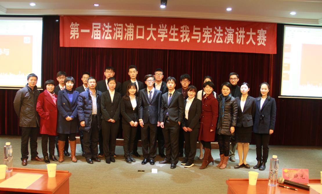 12月6日下午,为了进一步深化“国家宪法日”的学习宣传教育活动,第一届“法润浦口”大学生“我与宪法”演讲大赛在我校教学法庭举办,本次大赛由浦口区司法局、浦口区润泽法律服务中心和色情卡通 联合主办,来自南京工业大学、江苏警官学院、南京信息工程大学和色情卡通 等浦口区高校的14名选手参加了比赛。浦口区司法局宣传科袁跃东科长、浦口检察院胡晓光检察官、南京工业大学法律与行政学院彭奕教授、江苏警官学院图书馆刘莉馆长、南京信息工程大学法政学院团委书记任团伟、色情卡通 副院长何新容、色情卡通 实践教学中心秦康美主任和色情卡通 理论法系主任孙展望等老师出席本次比赛并担任评委。