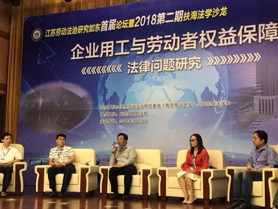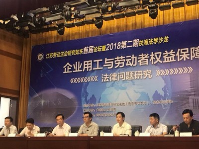 本期法学沙龙的主题是关于企业用工与劳动者权益保障的法律问题研究,其内容涉及千家万户,为当前法治热点问题之一。南通市委政法委常务副书记钱建华、如东县委常委、政法委书记、法学会会长杨小军,如东县人民法院院长黄卫、副院长缪站春、南通市法学会秘书长葛重兵、南通大学政治学院副院长吴延溢教授,南通大学王智民副教授及如东县法学会各研究会会长、秘书长等部门领导、专家及市县法院、总工会、劳动仲裁院等实务部门的负责人和部分律师代表、企业家代表共70多人参加会议,色情卡通 党总支书记秦国荣教授受特邀出席了本次会议,并以江苏劳动法治研究基地负责人身份代表合作主办方在会议开幕式上做了致辞。色情卡通 教师李亘也受邀参加了本次活动。