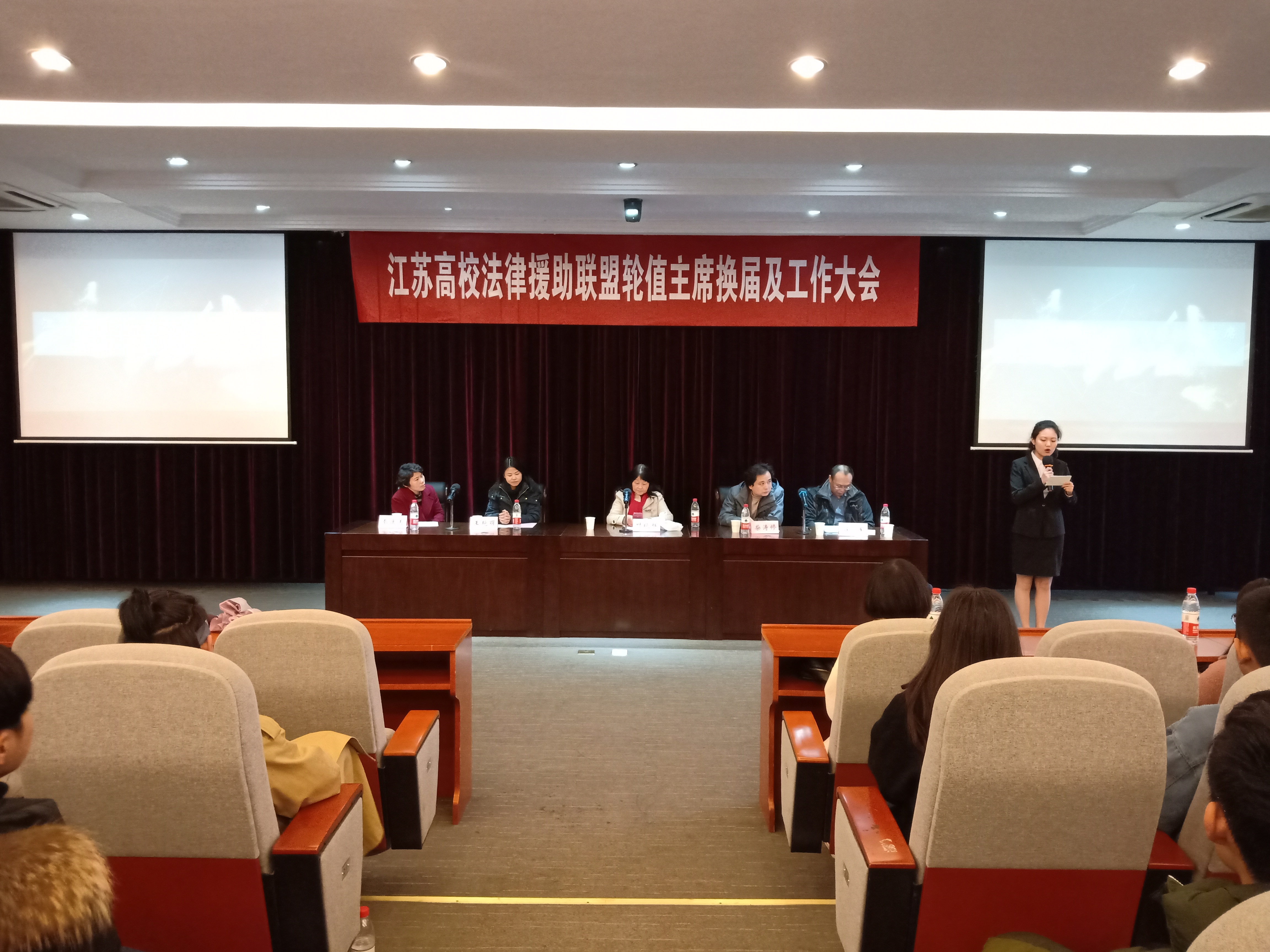 “江苏高校法律援助联盟”是南京大学、河海大学、南京财经大学、金陵科技学院等11所高校于2015年5月成立的,每年推荐江苏高校担任轮值主席,旨在培养法科大学生的公益心、责任心及理论联系实践的能力。