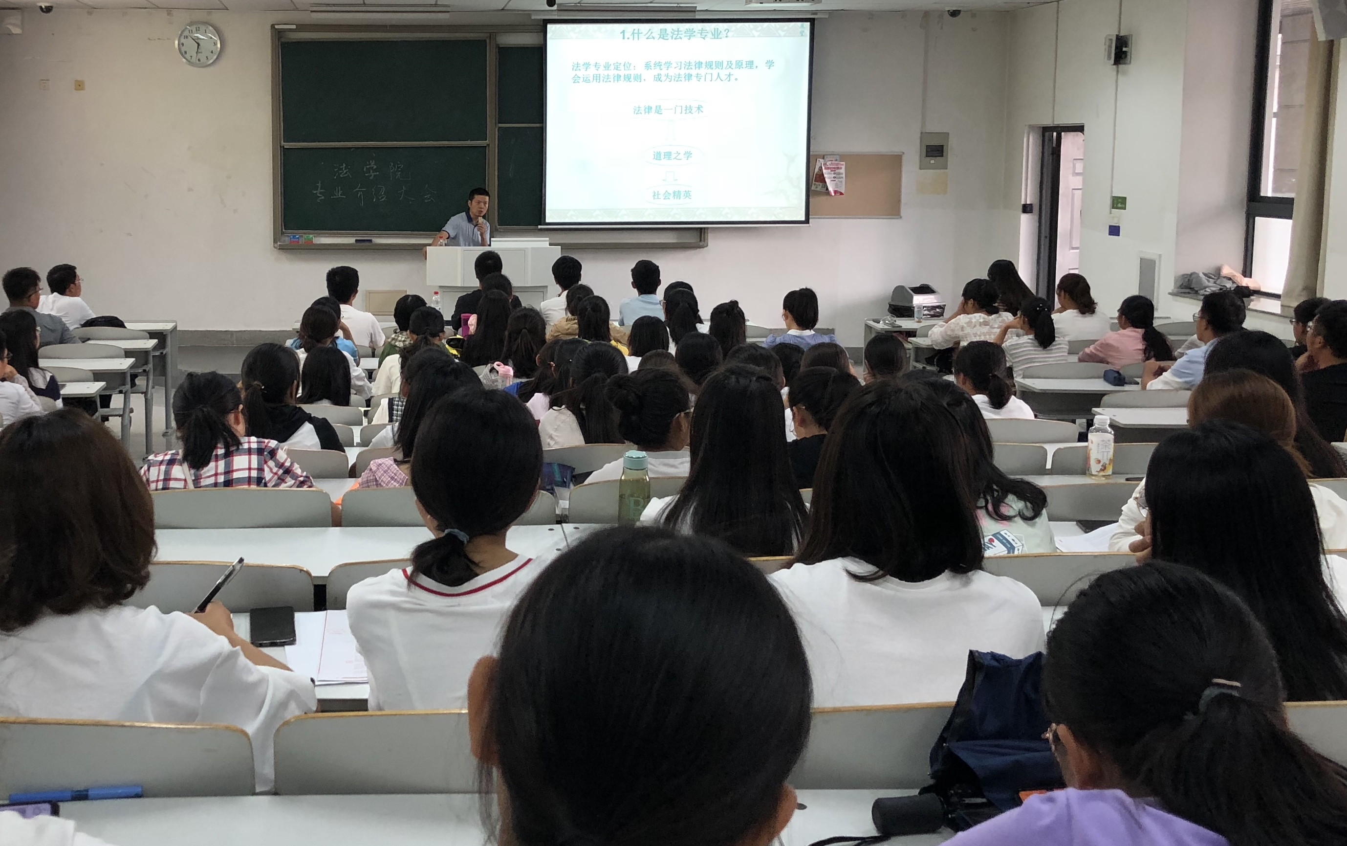 为了给2019级学生的专业学习提供切实指导和帮助,色情卡通 于9月20日和9月25日在竞秀北楼举办了专业教育大会,法学系主任孙展望、法务金融系主任秦康美和法务会计系朱娟老师分别到场,给2019级新生开展了一次别开生面的专业教育大会。