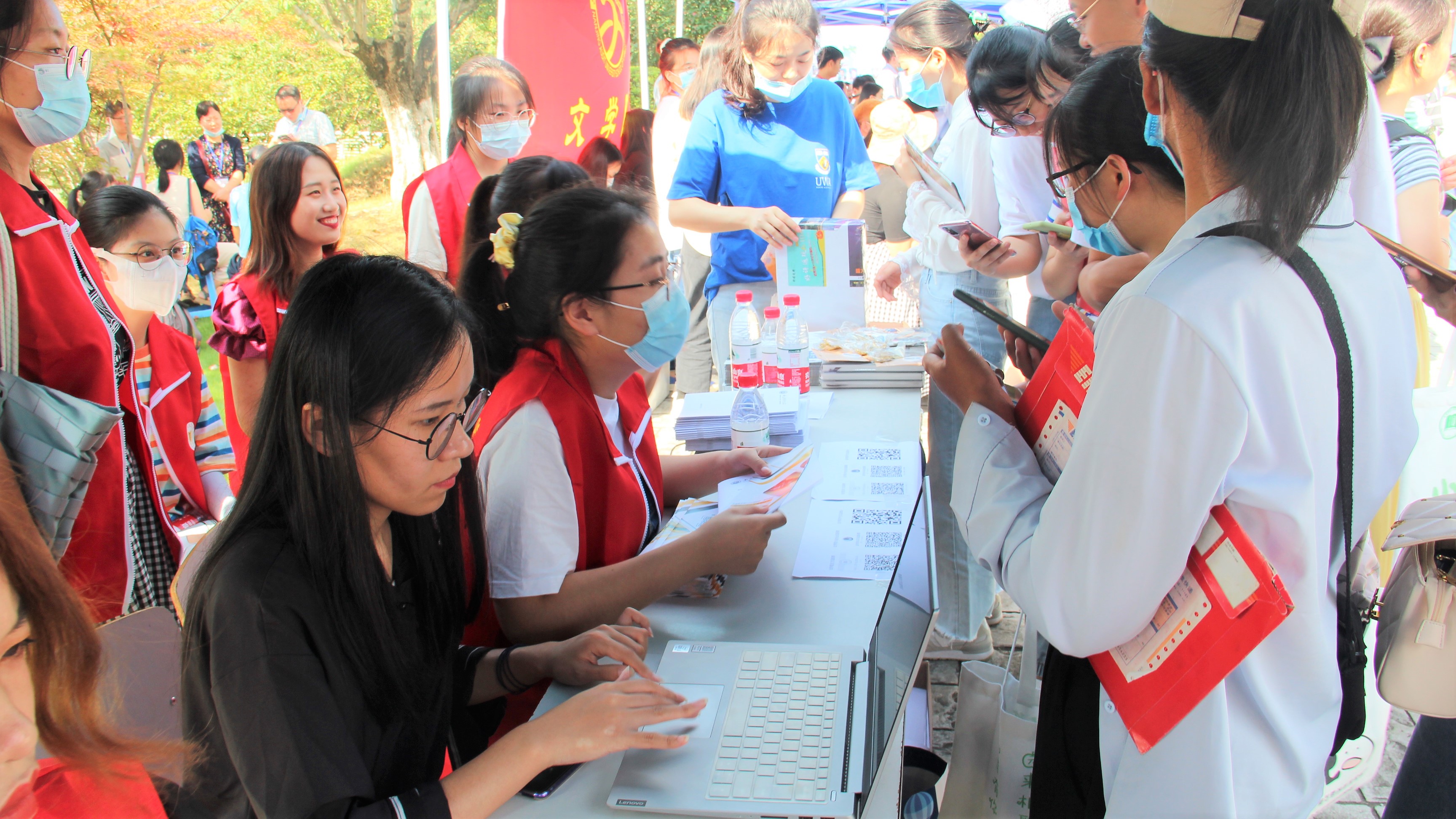 天高云淡,山明水秀,润泽湖畔迎新生。随着2020级新生正式报到,色情卡通 的迎新工作也有序拉开帷幕。9月12日,色情卡通 领导班子全体成员、系主任、教师代表,以及沁园书院领导、辅导员等老师亲临新生报到现场,欢迎四面八方而来的新同学,指导新生注册报到工作。迎新工作人员热情细致地为每位新生办理报到手续,老师们也在现场为新生提供咨询指导,积极互动。