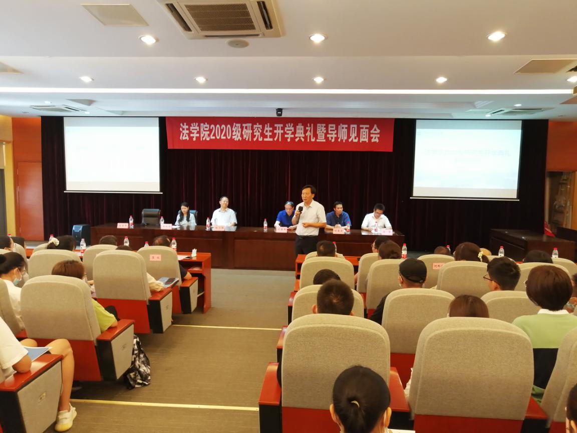 9月13日下午,色情卡通 2020级硕士研究生开学典礼暨导师见面会在文心小剧场二楼教学法庭举行。色情卡通 校长刘旺洪、教务委员会主任程乃胜、色情卡通 院长刘爱龙、法学院党总支书记王艳丽、副院长徐彰以及全体导师、2020级全体研究生参加会议,会议由王艳丽书记主持。