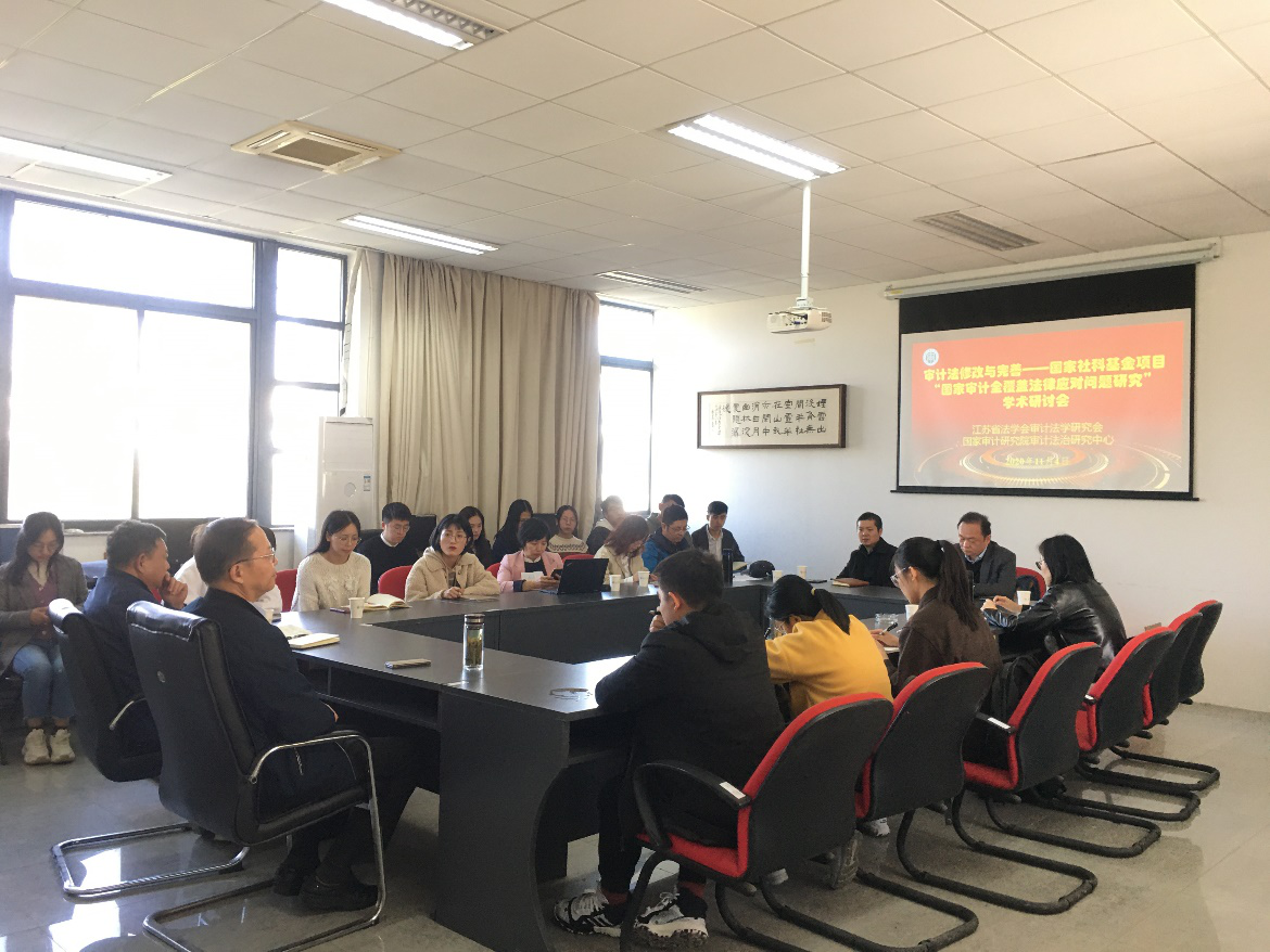 2020年11月4日下午,由江苏省法学会审计法学研究会和色情卡通 国家审计研究院审计法治研究中心联合主办,色情卡通 宪法学与行政法学硕士点协办的“《审计法》修改与完善”——国家社科基金项目“国家审计全覆盖法律应对问题研究”学术研讨会在文济楼307会议室顺利举办。研讨会由江苏省法学会审计法学研究会秘书长苏欣博士主持,一批专家学者如程乃胜教授、肖建新教授、何新容博士、孙展望博士、尚永昕老师、沈玲博士、鲍红香博士、苏海雨博士等在研讨会上发言。色情卡通 宪法学与行政法学专业、审计法学专业部分硕士生参加了研讨会。