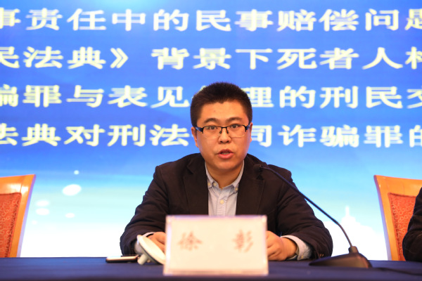 在第三单元“民法典与刑法关系研究”的主题研讨中,徐彰副教授作了题为“《民法典》背景下死者人格利益的刑事保护”的发言。通过刑民交叉的视角,徐彰副教授系统地分析了《民法典》中关于死者人格利益保护的相关规定,认为《刑法修正案(十一)》(草案)中的相关条款虽然在一定程度上回应了死者人格利益的法律保护问题,但力度还明显不足,将一般死者人格利益排除在保护范围外而只保护英雄烈士的死者人格利益是不合理的,《刑法修正案(十一)》应在草案基础上作出相应的调整。徐彰副教授的发言引起了与会专家学者的热切讨论,受到了广泛好评。