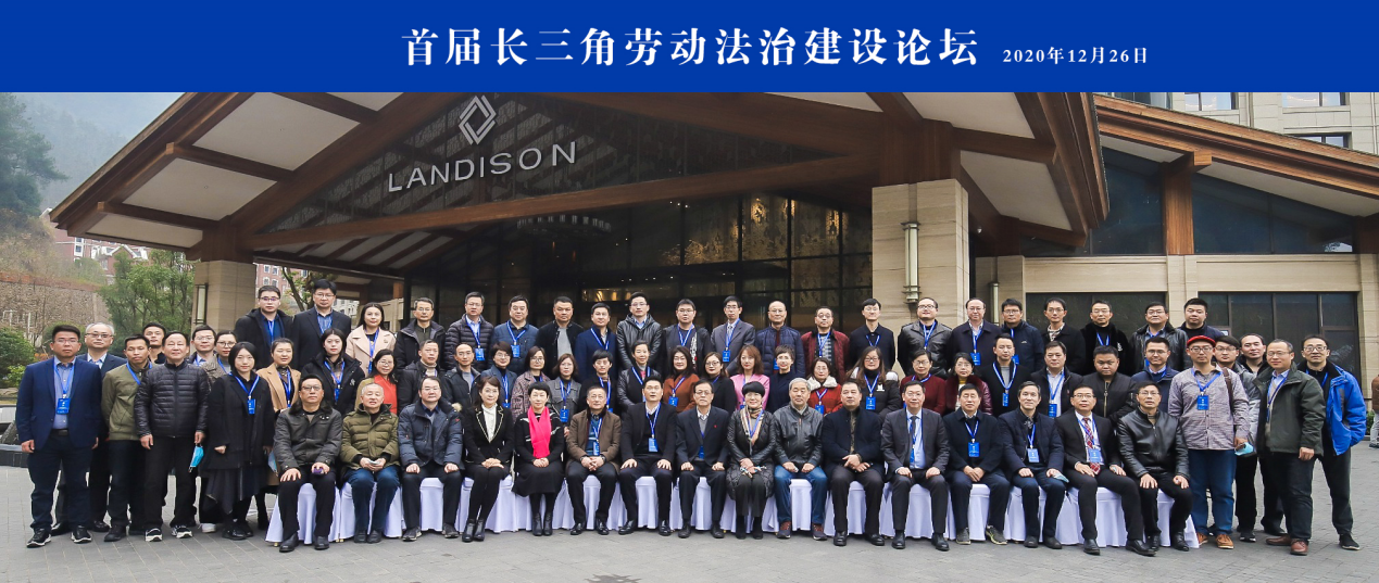 2020年12月26日、27日,由上海市法学会劳动法研究会、江苏省法学会社会法学研究会、安徽省法学会劳动法研究会和浙江省法学会劳动法学研究会等联合主办,由浙江省法学会劳动法学研究会、浙江杭州市建德区政府、杭州市工会等单位共同承办的“首届长三角劳动法治建设论坛”在浙江杭州建德举行。论坛主题为:长三角劳动法治一体化建设。