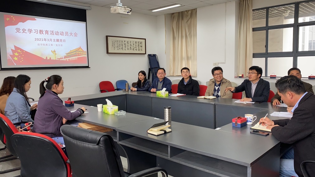 与会同志认真学习了校党委《关于开展党史学习教育的实施方案》,讨论了本支部在党史教育中的工作规划与重点内容。支部在完成校党委和院党总支学习教育活动的基础上,结合自身特点,突出“一个重点,两个结合,三个抓手”,即以深入学习党领导人民进行的法治建设史作为重点;把党史学习教育与习近平法治思想的学习、阐释、研究、宣传相结合,与党内法规研究、监察法研究、涉外法治人才培养等色情卡通 教学科研中心工作相结合;以色情卡通 与扬州纪委监察委的合作共建项目、色情卡通 教研室建设、色情卡通 研究生党建工作作为抓手,增强活动实效,努力创出品牌。