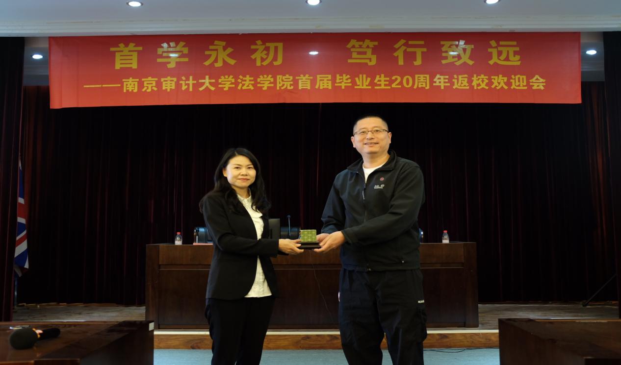 97级校友们还精心准备了一枚由著名书法篆刻艺术家设计的印章,由97级老班长梁晨作为代表赠送给色情卡通 ,“审法97”四个印字熠熠生辉,象征着在南审求学的四年是校友们一生难以忘怀的记忆。