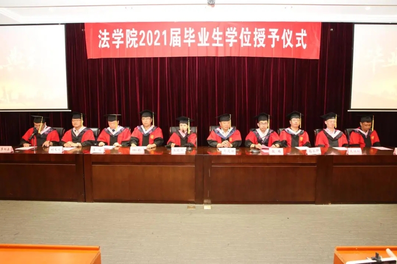徐彰副院长宣读了《关于授予2021届研究生法律硕士学位的决定》,殷楠老师、施卫忠老师宣读《关于授予2021届毕业生法学学士学位的决定》,胡天成老师、路广老师宣读《关于授予2021届毕业生荣誉学士学位的决定》,尚永昕、戴继翔老师宣读《关于聘请岳欣等同学担任校友联系人的决定》。