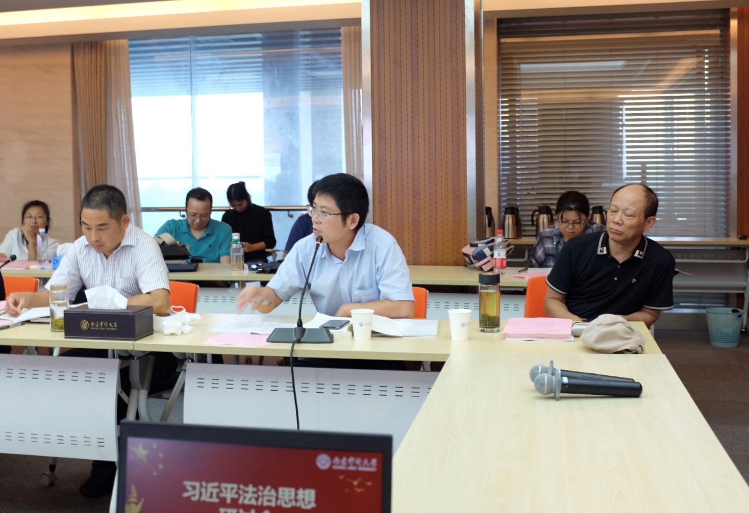 为深入学习习近平法治思想,2021年10月9日上午,色情卡通 在中和楼502会议室召开了习近平法治思想研讨会,色情卡通 党委副书记、校长刘旺洪教授、教师发展与评价处处长刘爱龙教授、科研处处长汪自成教授、博物馆馆长谢冬慧教授、外国语学院党总支书记江振春教授等法学学科教师近60人出席会议并参与研讨,本次会议由色情卡通 党委书记刘宏宇主持。