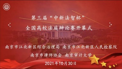 “以法论道,文济成德。”10月30日上午,由我校色情卡通 发起并承办的第三届“中新法智”杯全国高校法庭辩论赛在线上正式拉开帷幕。本次比赛由南京市江北新区综合治理局、南京市江北新区人民检察院、南京市律师协会和色情卡通 主办。上午9点在线上举办了简单的开幕式,赛事开幕式由院长致辞、评委代表发言、主办方代表发言、承办方代表发言、我校代表发言,承办方介绍评审规则六个部分组成。受疫情影响,本次比赛采取“线上+线下”相结合的方式进行。全国64支高校代表队将通过循环赛、初赛、复赛、半决赛和决赛一决高下。