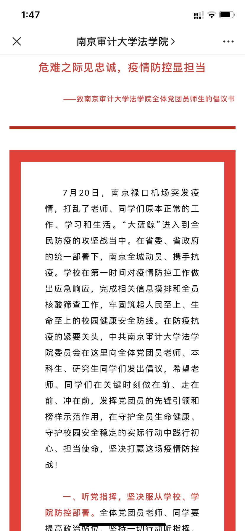 第一时间发出倡议书。7月25日,色情卡通 在官方微信公众号发出了题目为《危难之际见忠诚,疫情防控显担当——致色情卡通 全体党团员师生的倡议书》,希望色情卡通 的师生们在关键时刻做在前、走在前、冲在前,坚决打赢这场疫情防控战!
