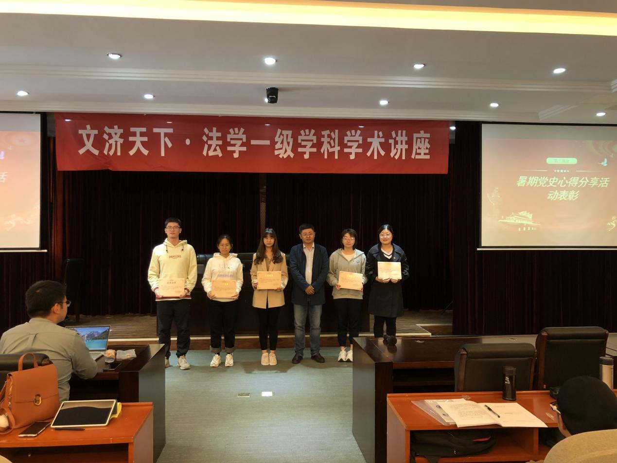 随后,会上就暑期“坚守理想,践行初心——学习贯彻‘习近平总书记在庆祝中国共产党成立100周年大会上的重要讲话精神’”线上学习分享活动进行了表彰,并由刘宏宇书记向获奖党员颁发奖状,其中一等奖获得者为王志清、王昌鸿,二等奖获得者分别为俞陶涛、胡蝶、冀硕、胡凌宇,三等奖获得者分别为袁俊杰、温家珠、朱红、吴轩孜、俞晓婷。
