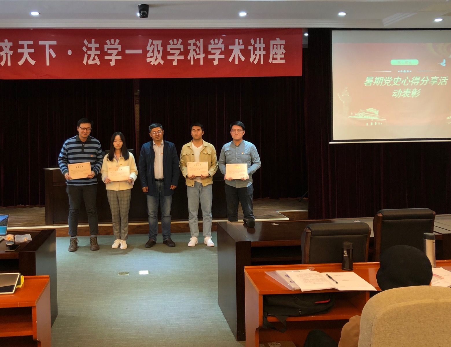 暑期线上接龙心得分享活动一等奖获得者与刘宏宇书记合影