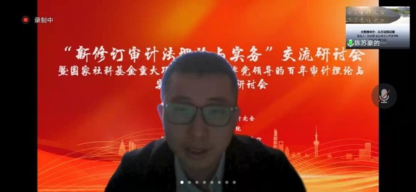 为进一步加强审计法理论研究,推动新修订审计法顺利实施, 4月16日,江苏省法学会审计法学研究会,色情卡通 、国家审计研究院审计法治研究中心、政府审计与区域治理法治化研究院联合召开“新修订审计法理论与实务”交流研讨会暨国家社科基金重大项目“中国共产党领导的百年审计理论与实践研究”专题研讨会。根据疫情防控要求,本次研讨会采取线上形式召开。来自理论界和实务界的专家以及色情卡通 研究生共70余人参加。
