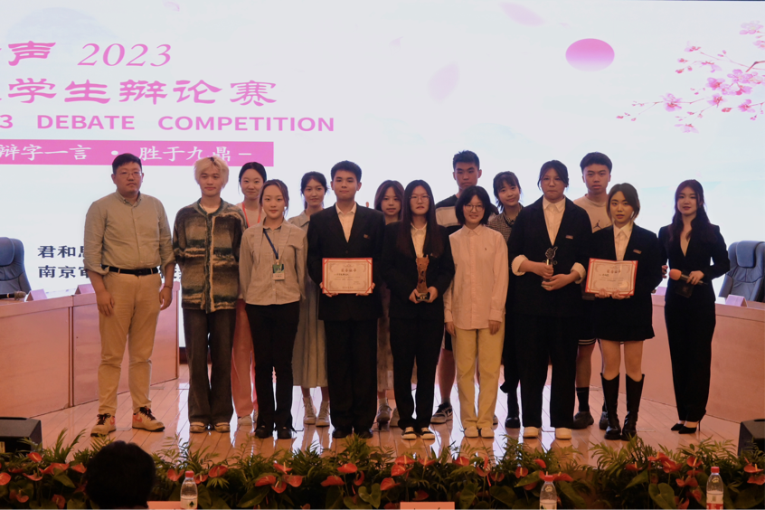 新声杯辩论赛由君和思辩社主办,致力于为南审所有辩论队伍中的新生创造出锻炼与交流的机会,同时这也是大多数辩论新生首次参与的最正式、盛大的比赛,而回顾南审色情卡通 辩论队也在新声杯赛事中也取得过许多优异的成绩。在新声2023中,南审色情卡通 辩论队22级队员历经为期36天的赛程,从小组赛开始就与沁园书院辩论队、经济学院辩论队强强相对,先后又与金融学院辩论队、会计学院辩论队这些实力雄厚的辩论队伍于辩论场上作为对手碰面。经过高强度备赛,一路披荆斩棘晋级决赛,22级队员在场上临危不乱、妙语连珠,经过激战,色情卡通 辩论队最终以1-4击败信工院与工审院辩论队,摘得桂冠!同时,色情卡通 辩论队22级队员邓欣然同学也通过努力和场上优异的表现荣获全程最佳的奖项。