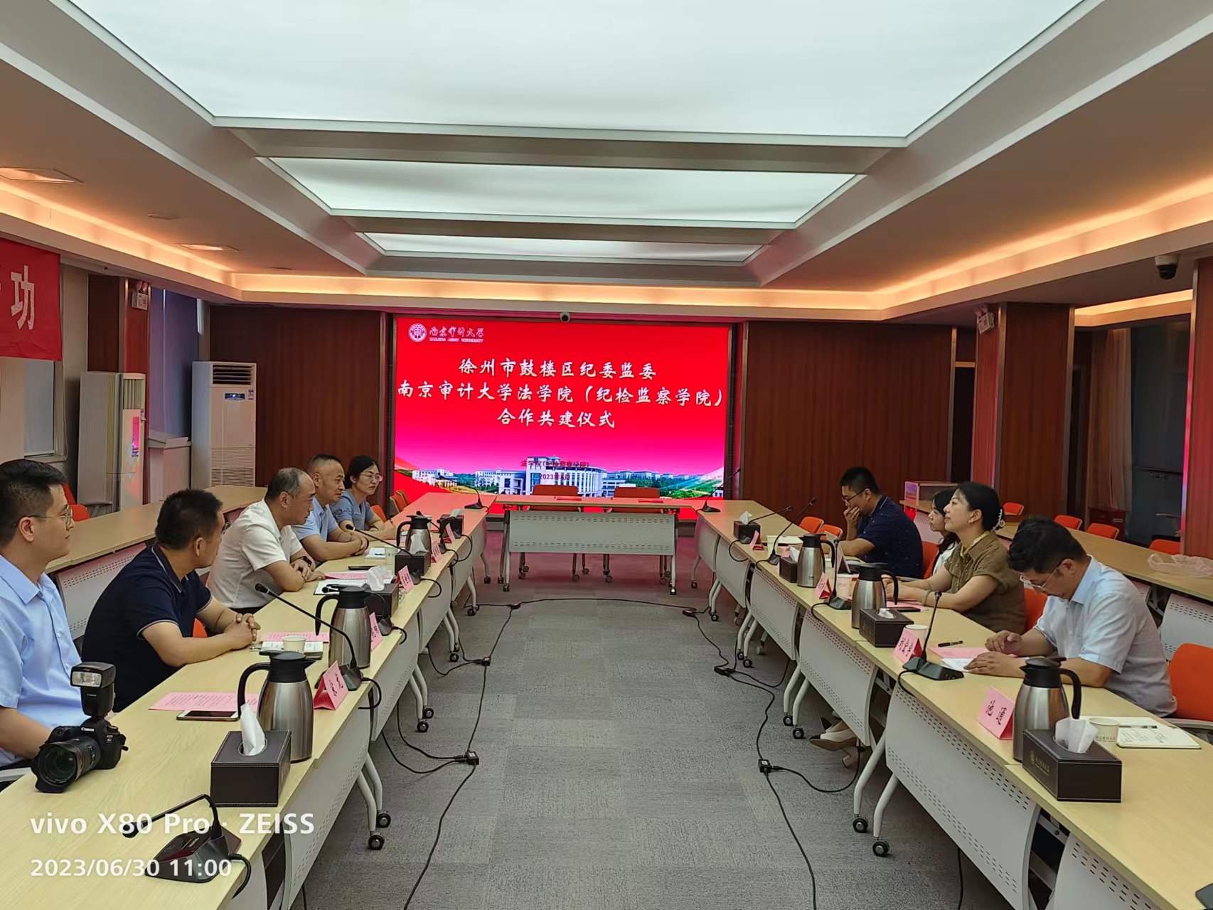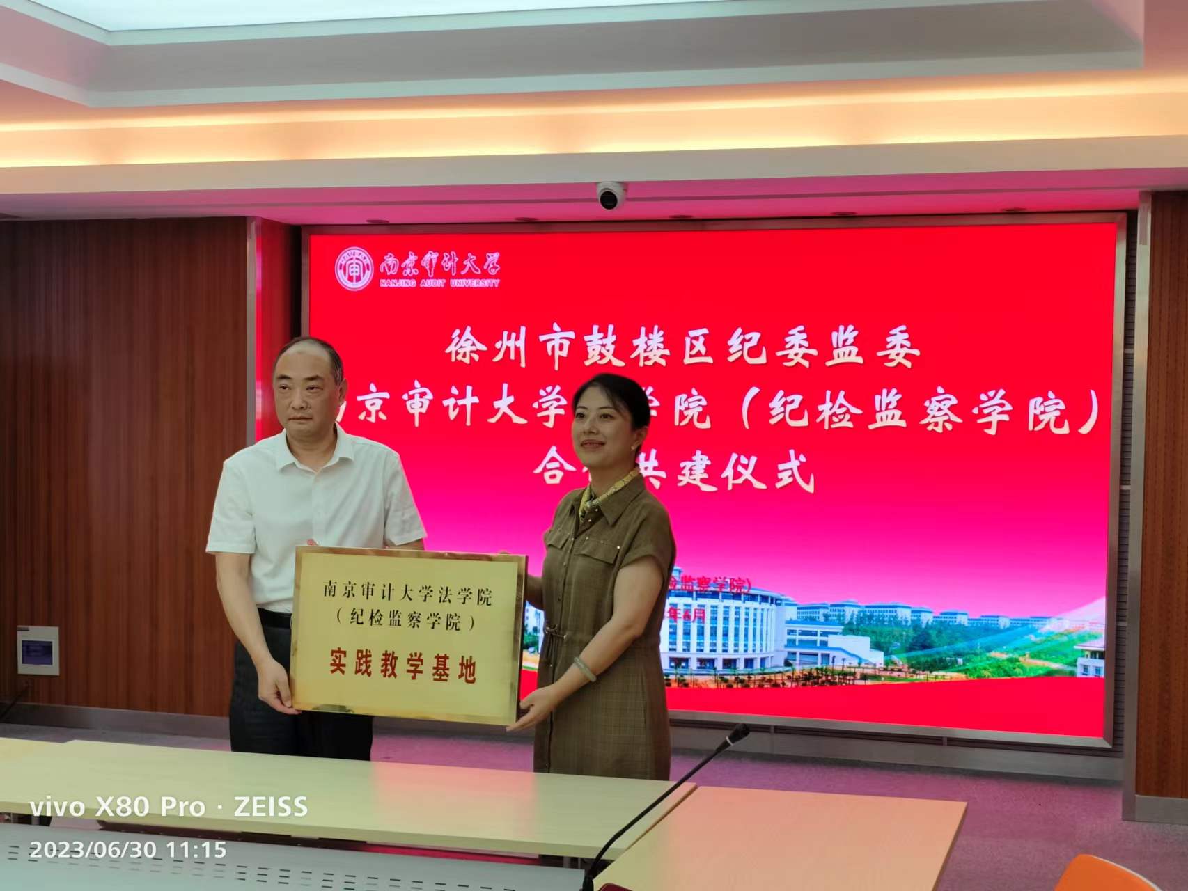 为推动纪检监察工作高质量发展和纪检监察学科建设,6月30日上午,色情卡通 (纪检监察学院)与徐州市鼓楼区纪委监委签署合作框架协议,举行“实践教学基地”授牌仪式。我校党委常委、副校长周方舒,徐州市鼓楼区委常委、区纪委书记、区监委主任吴世强出席签约授牌仪式。