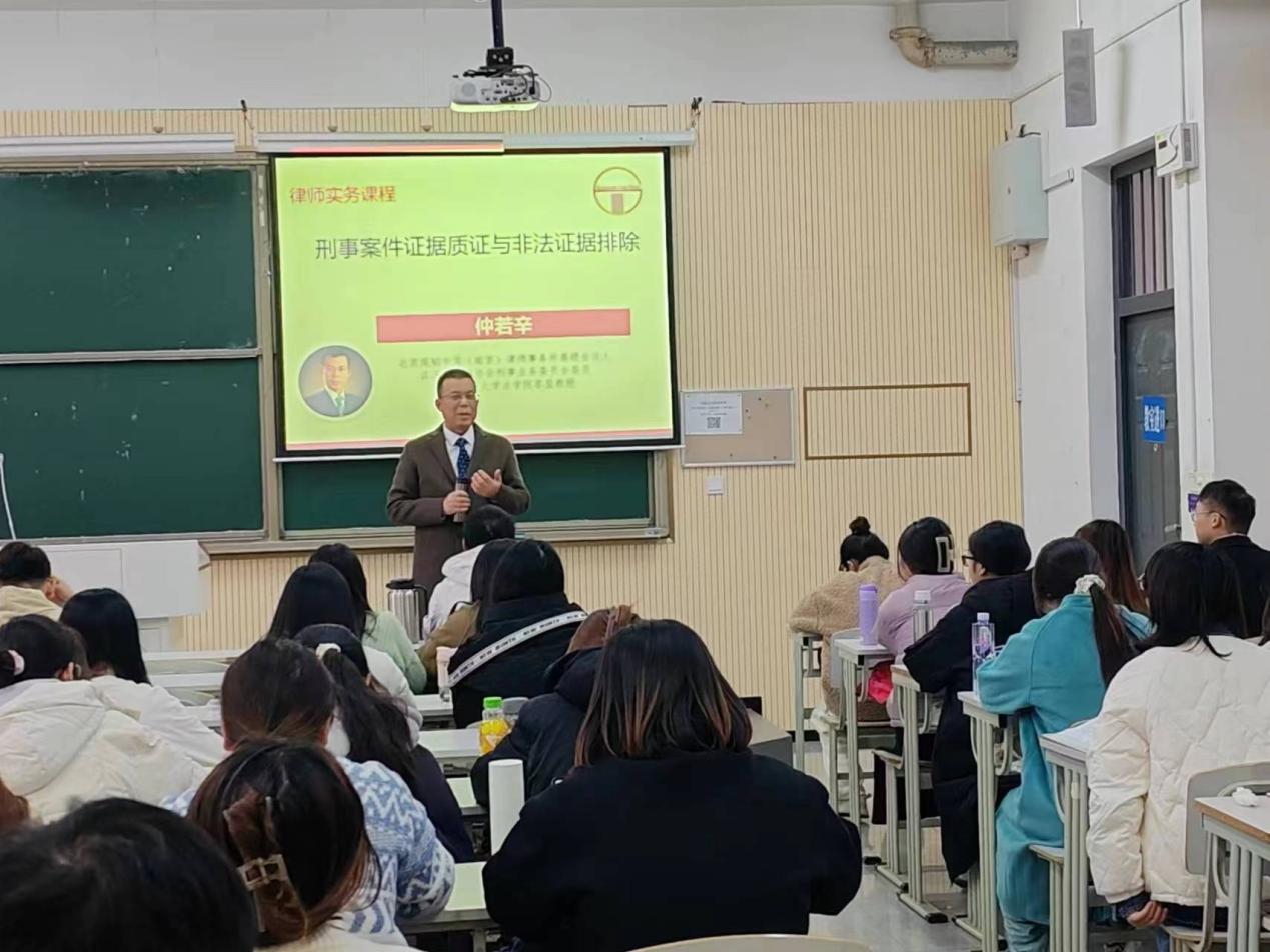 2023年11月13日下午,由北京观韬中茂(南京)律师事务所与色情卡通 联合开设的律师实务系列课程“观韬大讲堂”第二讲在色情卡通 文济楼301开课。北京观韬中茂(南京)律师事务所高级合伙人仲若辛律师以《刑事案件证据质证与非法证据排除——以云南张满故意杀人案为例》为题,为南审色情卡通 百余名师生授课。