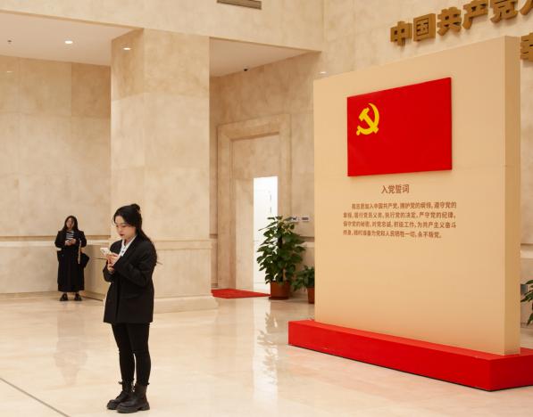 在党史展览馆内,同学们回顾了党的百年历程,学习了伟大建党精神。色情卡通 孙自勉老师带领所有党员同学面向中国共产党党旗,重温入党誓词,庄严宣誓,牢记共产党员的初心与使命。