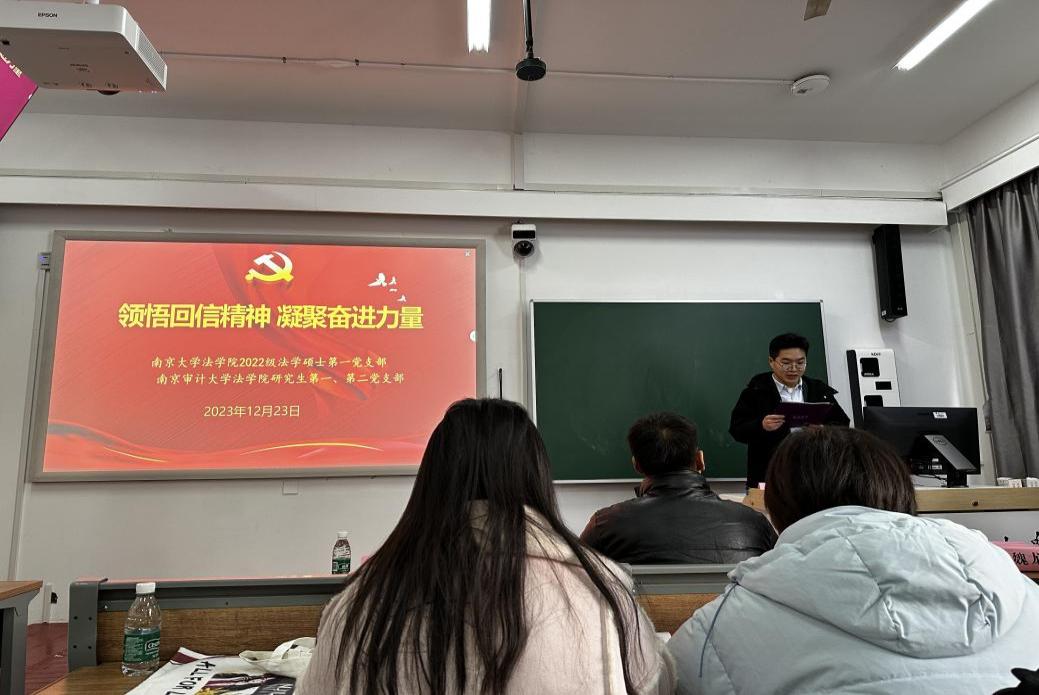 为深入学习习近平总书记给色情卡通 审计专业硕士国际班留学生的回信精神和南京大学留学归国青年学者的回信精神,以及习近平总书记在中共中央政治局第十次集体学习上的讲话精神,进一步加强研究生党支部建设,12月23日上午,色情卡通 研究生第一、第二党支部部分党员赴南京大学(浦口校区)参观学习,与南京大学2022级法学硕士第一党支部共建,开展“领悟回信精神,凝聚奋进力量”的主题党日活动。