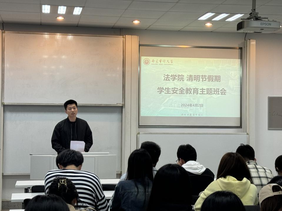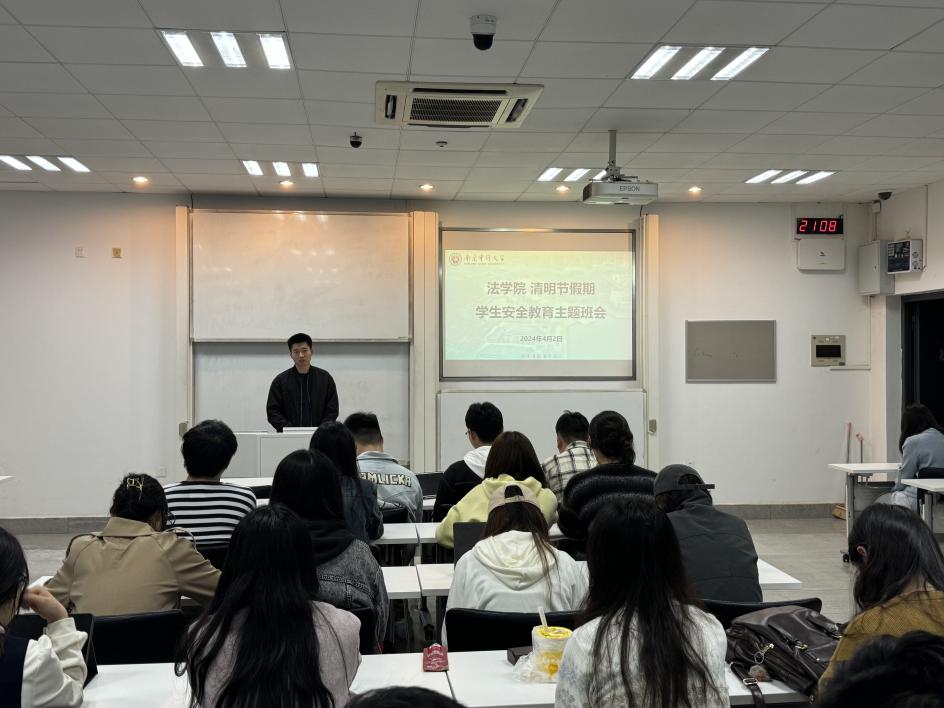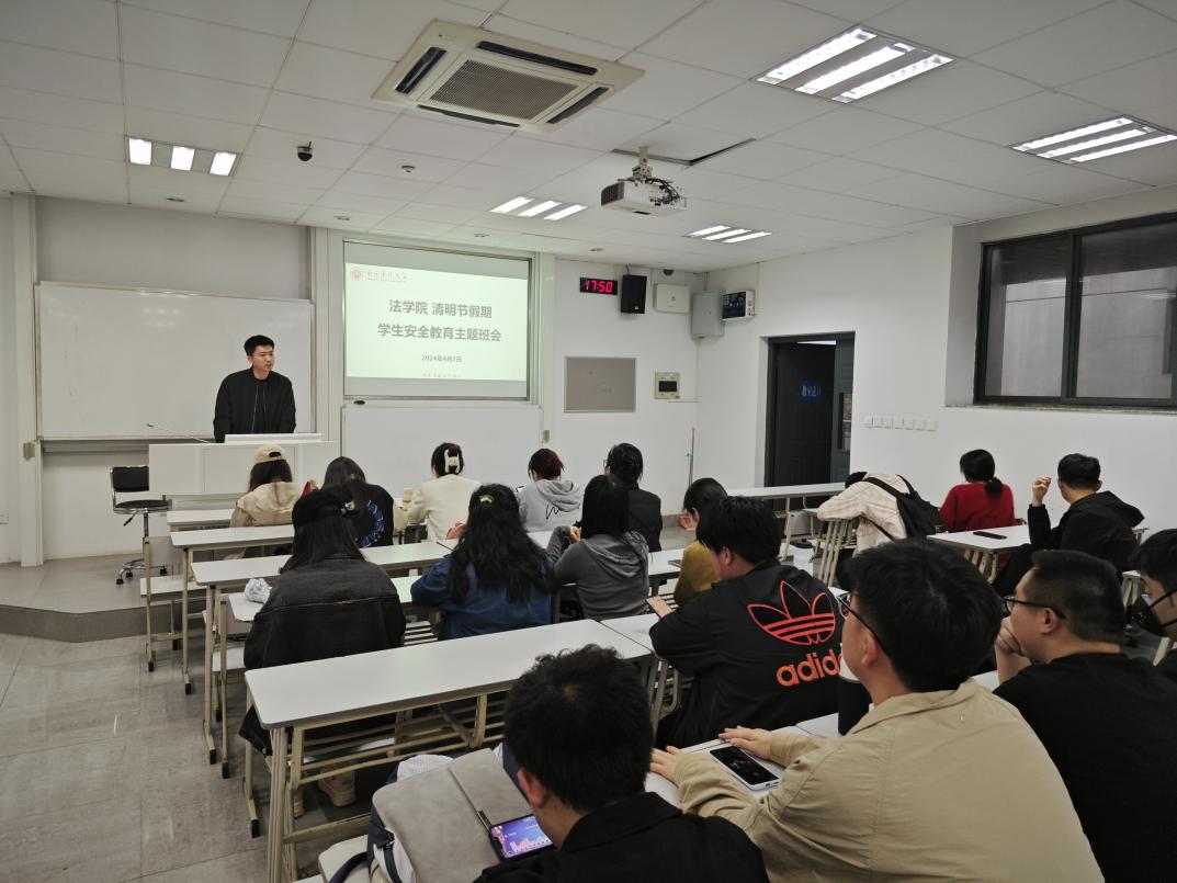 为切实做好清明节放假前的安全教育,确保学生人身和财产安全,维护校园稳定,让同学们度过一个平安假期,4月2日,法学院召开了“清明节假期学生安全教育”主题班会。