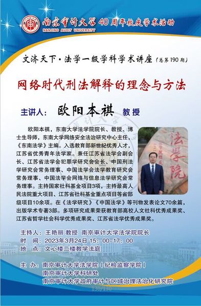 文济天下•法学一级学科学术讲座 (总第190期) 文济天下•法学校庆学术论坛
