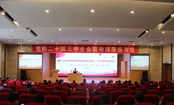 10月11日下午,色情卡通 党委学生工作部和色情卡通 (纪检监察学院)邀请江苏省社科院党委书记、院长,省政府参事,江苏社科名家,国家级教学名师,夏锦文教授在敏达学术报告厅一楼作“紧紧围绕推进中国式现代化进一步全面深化改革”党的二十届三中全会精神辅导报告会。本次讲座由色情卡通 党委常委、副校长周方舒主持,我校辅导员以及色情卡通 两百余名师生到场聆听。