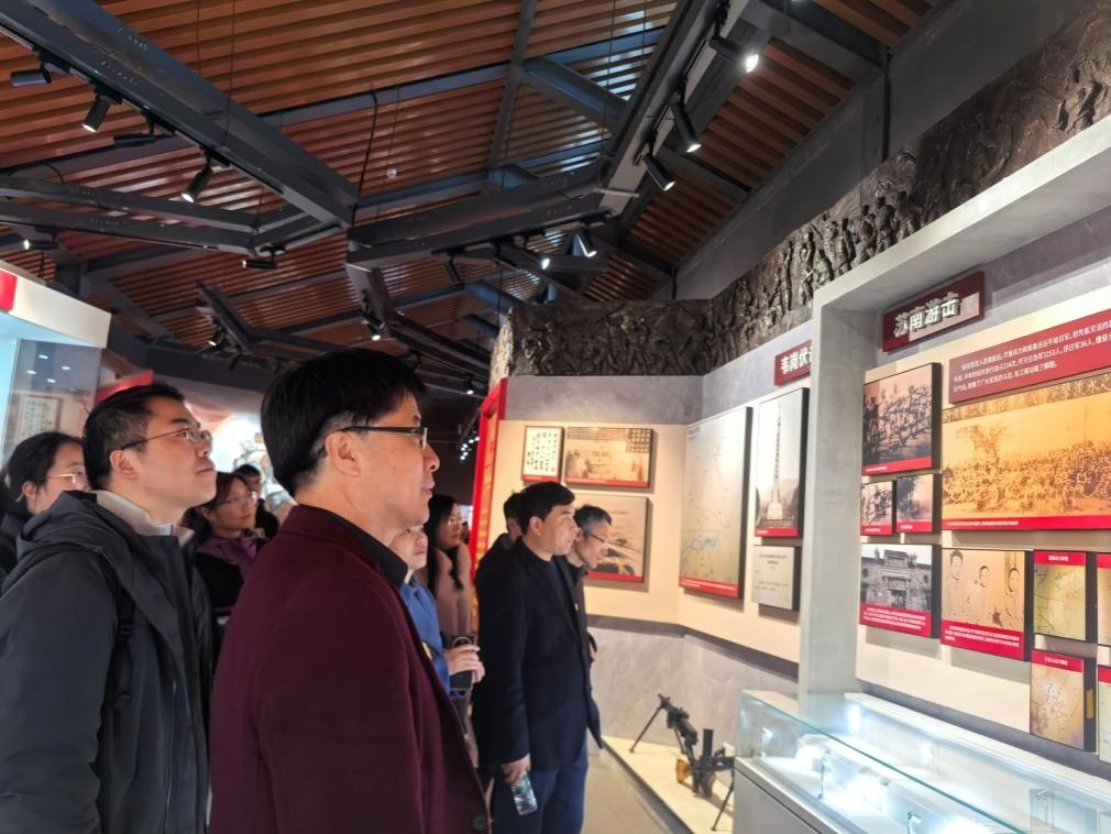 刚进入村口,迎面而来的是花丛环绕的“永远的初心”,后面矗立着“红色李巷”纪念碑,以及抗战先辈的工作战斗群雕,展示了新四军打游击时“幕天席地”的气概。教职工们参观了中国新四军历史研究馆,馆内一组组对照鲜明的数字、一张张破损泛黄的照片,无不向我们展示着这支铁军“不怕困难、不畏艰险,敢于斗争、敢于胜利”的革命精神。