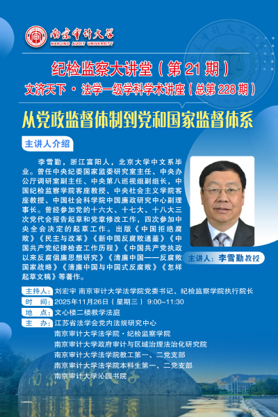 纪检监察大讲堂(第21期)文济天下•法学一级学科学术讲座(总第228期)