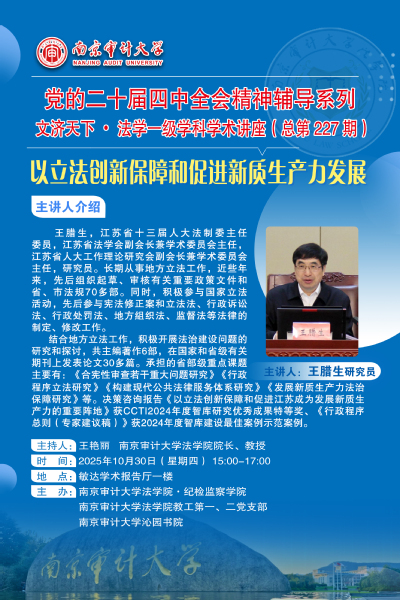 党的二十届四中全会精神辅导系列 文济天下•法学一级学科学术讲座(总第227期)