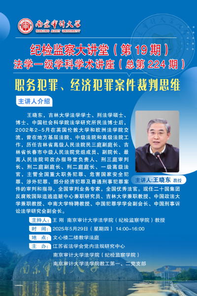 纪检监察大讲堂(第19期)文济天下•法学一级学科学术讲座(总第224期)